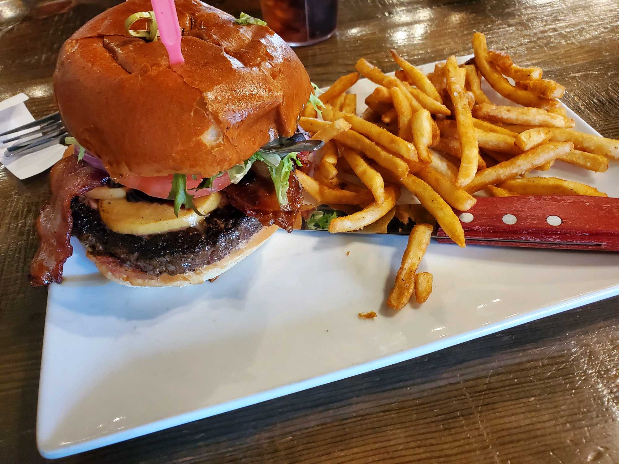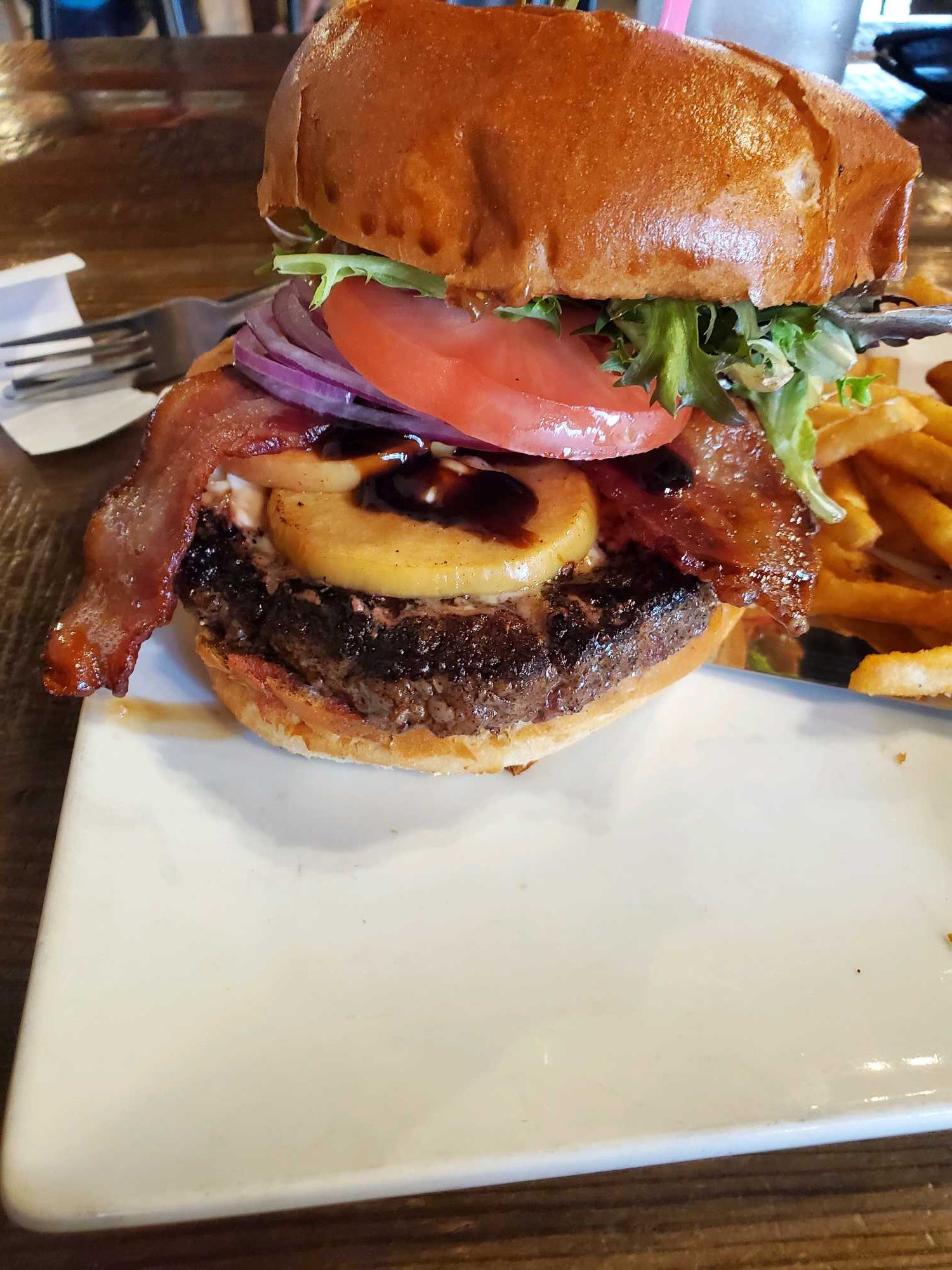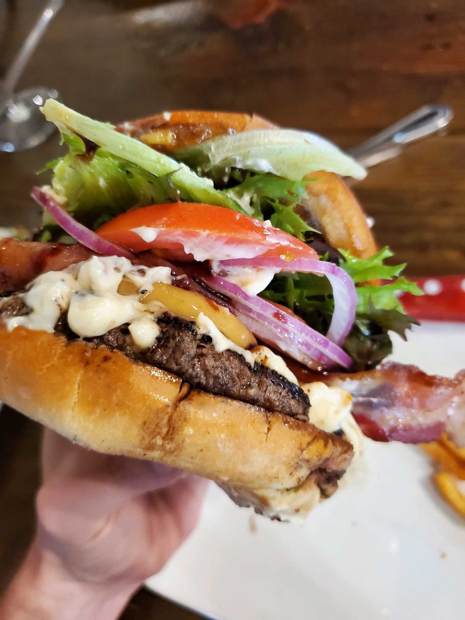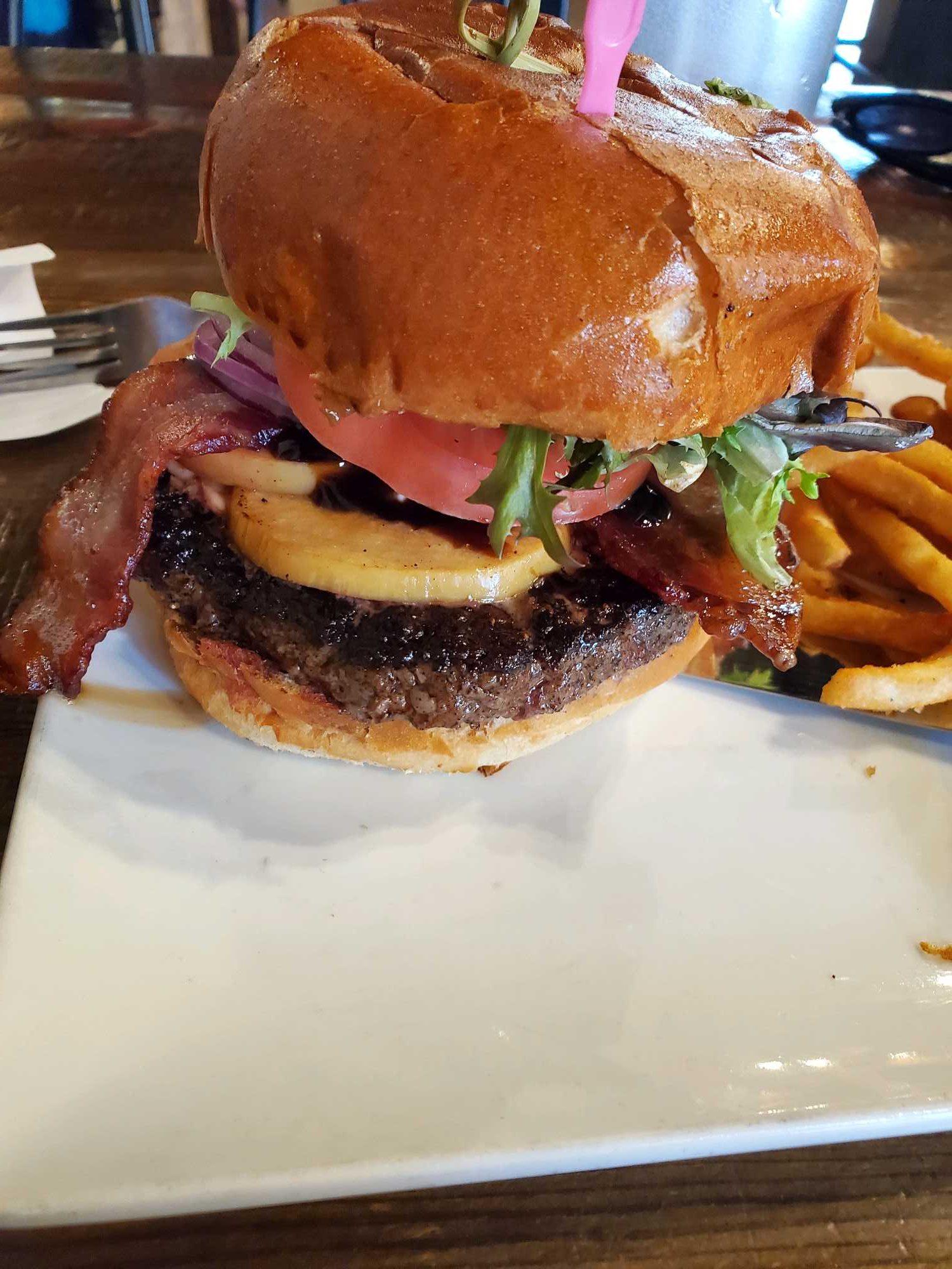 Brisket Short Rib Beef, House Bun, Brie, Gala Apples, Field greens, tomato, red onion, balsamic reduction