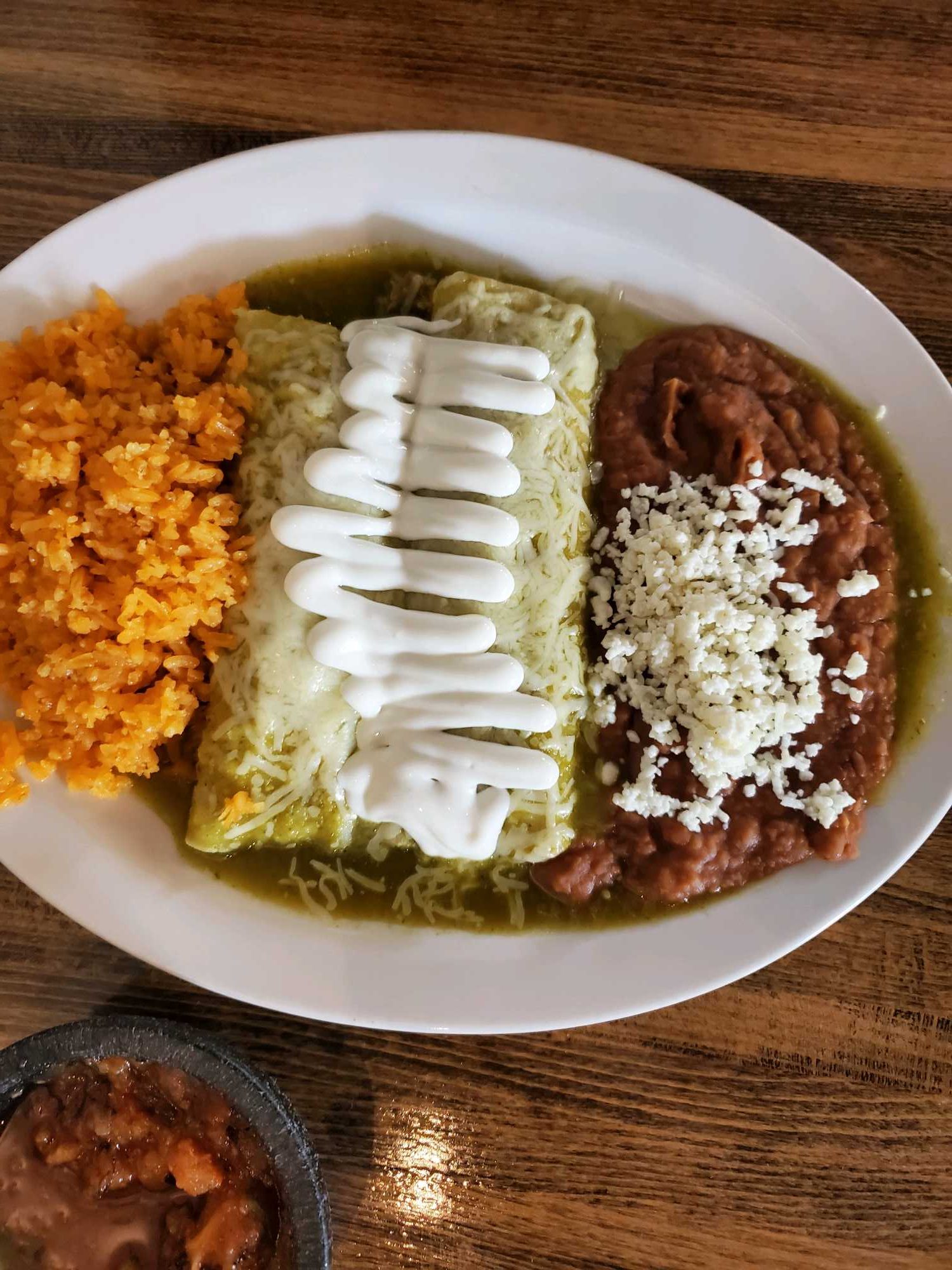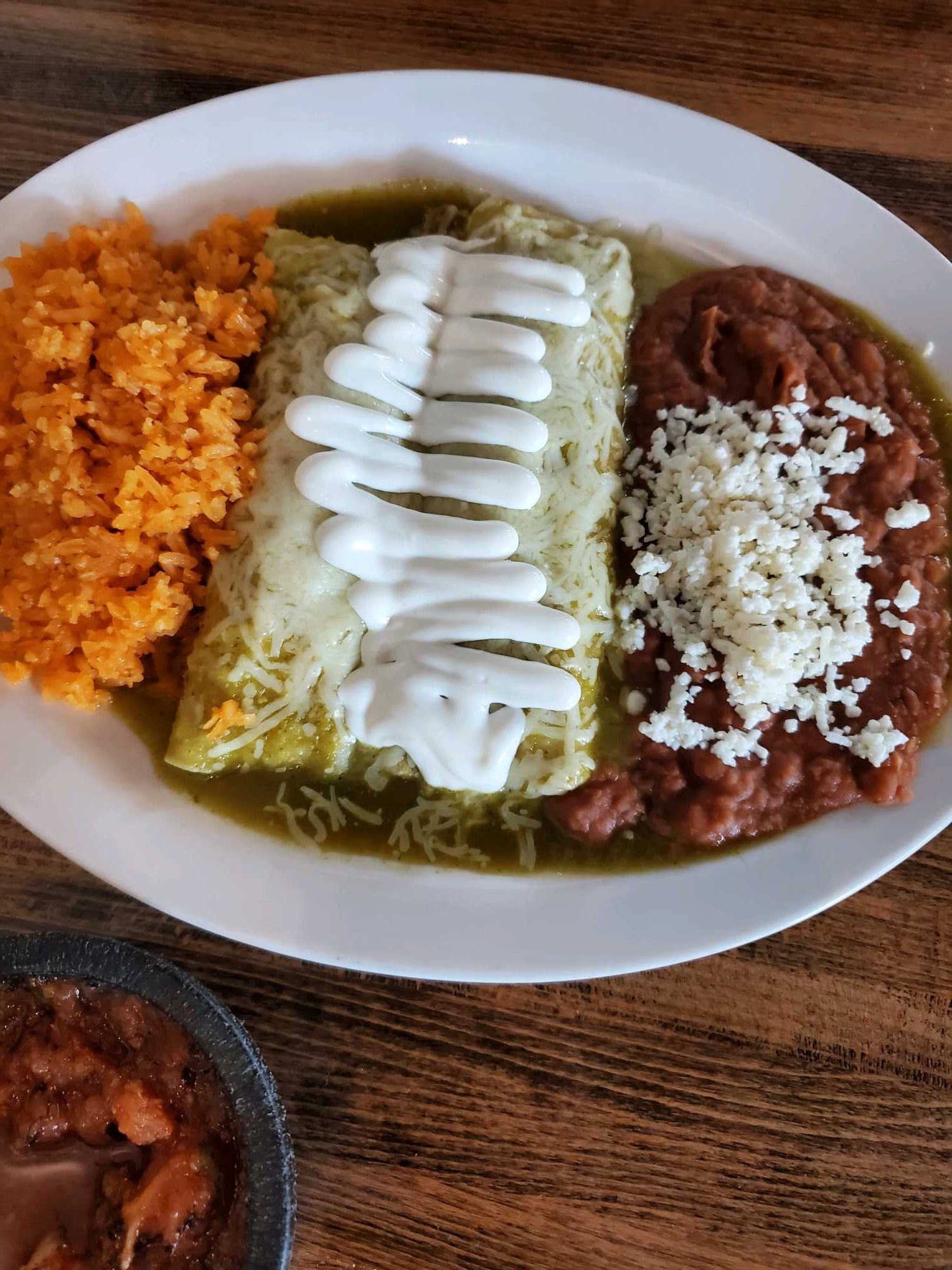 Green or Red Sauce, Filled with Cheese or Chicken. Covered with Melted Jack, Crema, Queso Fresco & Cilantro